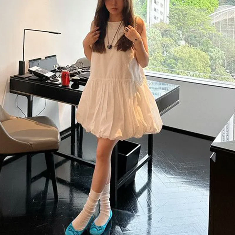 Black Sleeveless Vest Dress Women Summer Gentle Personality Loose All-Match Flower Bud Short Skirt Korean Style Dress