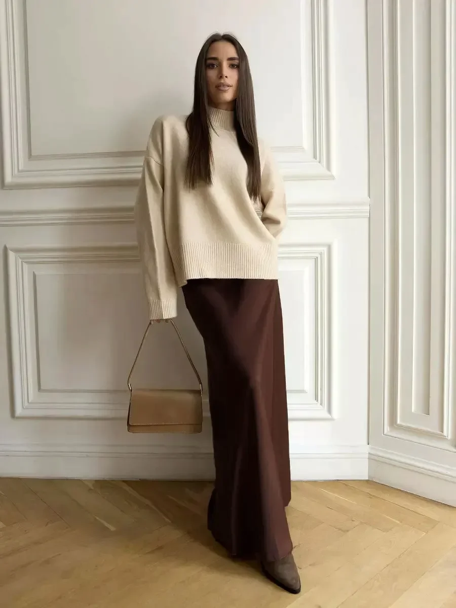 • Bornladies Casual Satin Women��S Skirt Spring Summer Fashion Loose High Waist Maxi Skirts Elegant Simple Slik Fishtail Skirt