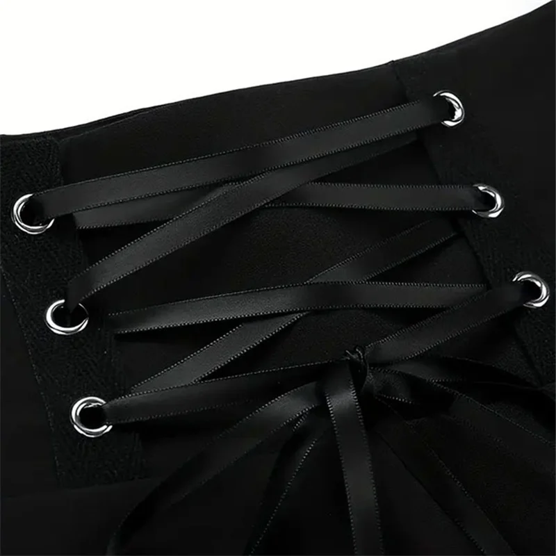 • Halloween Mall Goth Skirt Women Harajuku Y2k E-girl High Waist Bandage Black Mini Skirt Dark Gothic Punk Club Wear Streetwear
